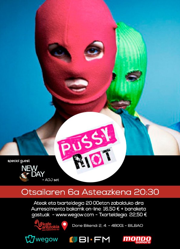 Así, siete años después de aquella improvisada actuación dentro de la Catedral de Cristo Salvador de Moscú, será Kafe Antzokia, puerta con puerta con la Iglesia de San Vicente, la que acoja su espectáculo. Allí darán buena muestra de su oposición a los dogmas y privilegios eclesiásticos, sin olvidar su animadversión hacia el presidente ruso, Vladimir Putin, ni su lucha en favor del feminismo o de los derechos LGTB.