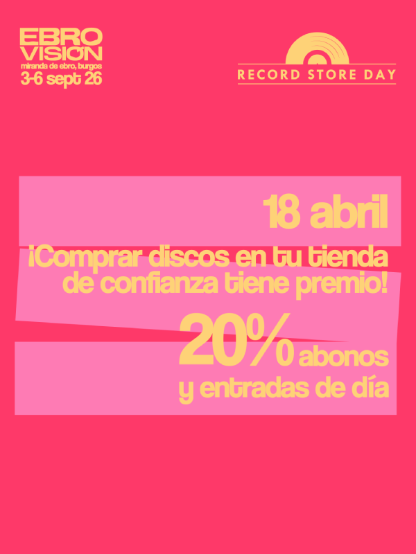 Pero no todo lo que se podrá adquirir serán obras discográficas. Por primera vez, un festival se suma a la iniciativa y, así, Ebrovisión 2026 contará con entradas de día y abonos con un 20% de descuento para todas aquellas personas que se acerquen el sábado a alguna de las tiendas del Record Store Day. No habrá más que hacerse con alguno de los flyers disponibles en ellas y escanear su código QR.