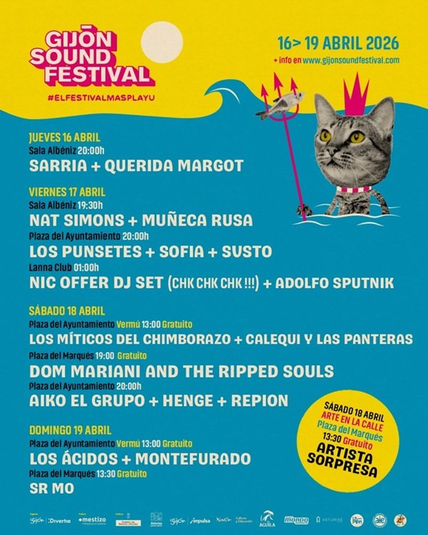 El próximo mes de abril, tendrá lugar en Gijón una nueva edicón de Gijón Sound Festival, con cuatro jornadas que mezclarán «música, arte, comunidad y calle» en dos días con entradas de pago (16 y 17 ) y dos días gratuitos (18 y 19).