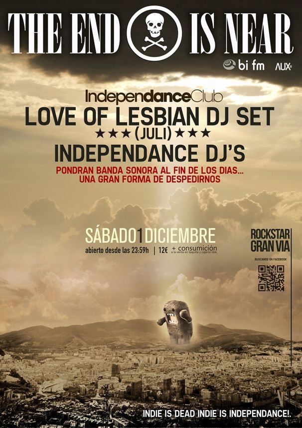 El tercer asalto de la segunda temporada de Independance Club en Bilbao tendrá lugar el próximo sábado 1 de diciembre bajo el lema «The End Is Near» y con Juli Saldarriaga, guitarrista de Love Of Lesbian, como Dj invitado.