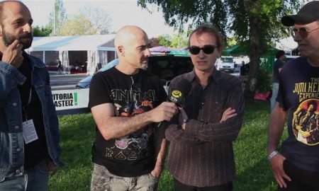 Josele Santiago, Fino Oyonarte, Chema "Animal" Pérez y Manolo Benítez atienden a bi fm en Azkena Rock Festival 2013 unos minutos antes...