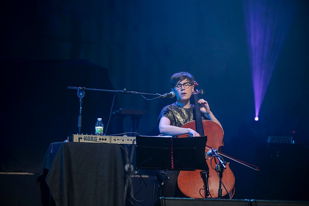 A las 21:30 horas abrió sus puertas el teatro. Empezaron a caer las primeras cañas (por 1,50€ -no está de más destacarlo-) y a situarse un público que, poco después (a las 22:00h), alucinaría con Mursego. Y es que lo de Maite Arroitajauregi está tan a otra escala, que no le hace justicia ni quedarse en que es violonchelista… ni tratar de ampliarlo diciendo que factura «música experimental». Hay que verlo. Así que mal, muy mal, si no lo hiciste en el MAZ.