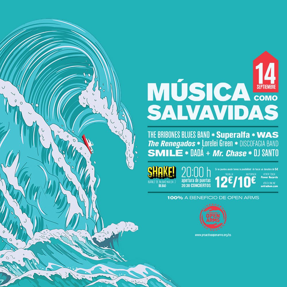«La música como salvavidas«, ese es el lema del minifestival que el próximo viernes 14 de septiembre tendrá lugar en la sala Shake de Bilbao para recaudar fondos a beneficio de Open Arms, el buque de la organización Proactiva Open Arms que patrulla el Mar Mediterráneo para rescatar a las personas migrantes que se juegan la vida al intentar llegar a Europa a bordo de precarias y peligrosas embarcaciones.