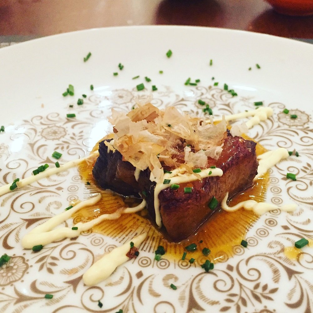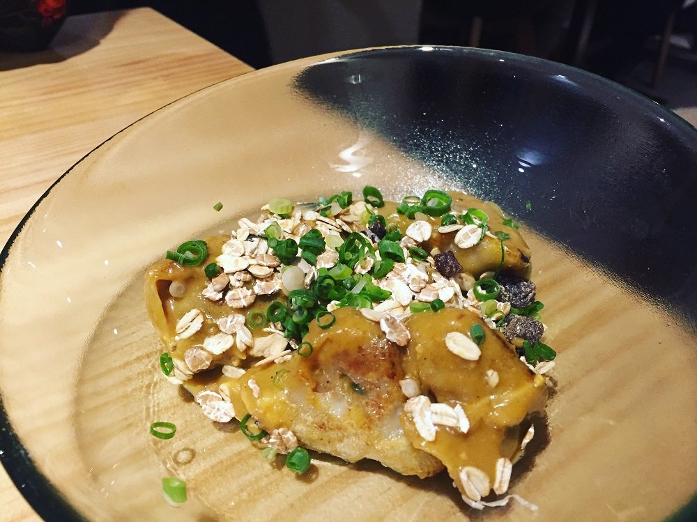 Lo que menos nos convenció fueron las ‘gyozas de secreto ibérico y shisho’ (16,20 €) pues la salsa de curry, que de primeras fue lo que nos atrajo, acabó por camuflar el sabor del secreto ibérico. Además de que el papel del muesli como topping me resultó un tanto seco. No lo volvería a escoger.