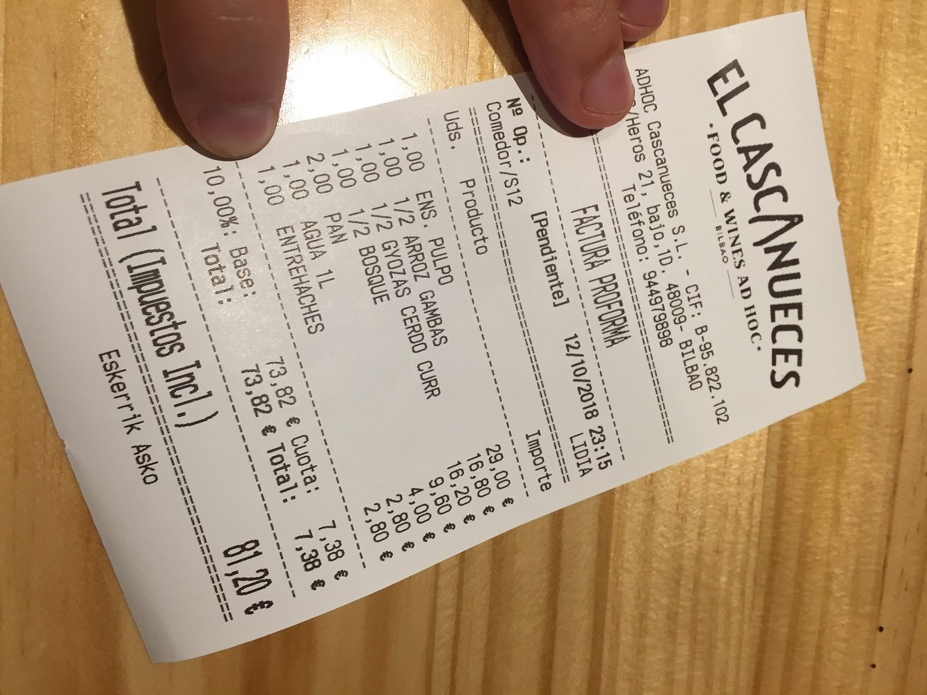 No os voy a engañar, llegué a duras penas al final de la cena. Muy satisfecho por la calidad y sobresatisfecho en cantidad. La cuenta salió a 81,20 € para dos personas, una cifra acorde a la experiencia que acabábamos de vivir allí dentro. Recomendable, muy recomendable.