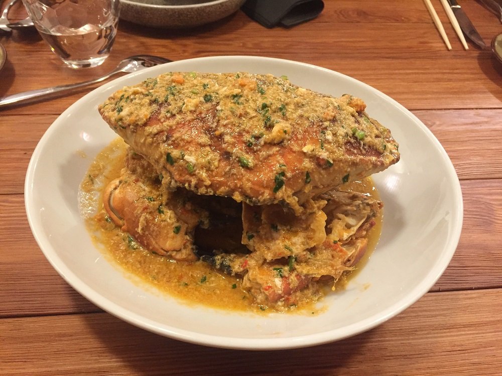 El protagonismo de la noche se lo llevó la “Caldereta indochina de buey de mar”. No tenía pensado empezar con la cascarilla a esas alturas de diciembre, ya tendríamos oportunidad en las navidades. Un buey de mar para cada dos personas, con la conocida salsa del “chillycrab” originaria de Singapur. Es una salsa agridulce y semiespesa que, a pesar de su nombre, no es demasiado picante. Pillamos a Iván por banda para que nos explicase que lleva “un sofrito de ajo, chile, cilantro, kétchup, galanga (similar al jengibre) y huevo ligeramente batido”. Invertimos mucho tiempo en sacar toda la carne de cada pata y el coral de su cazuela. Tiempo bien invertido. ¡Caramba, qué rico!