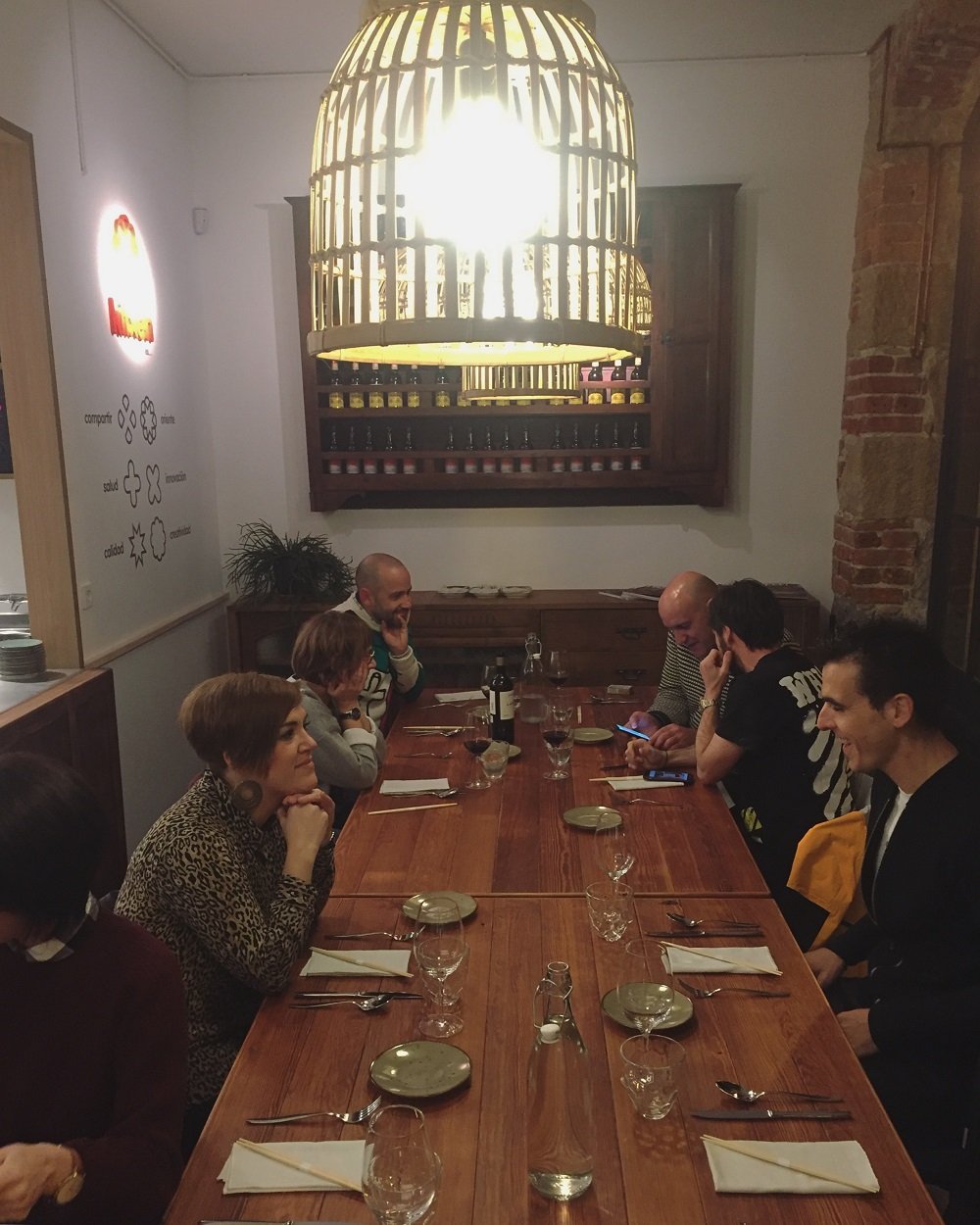 Esto es lo que hicimos hace unas semanas. Convencí a otra pareja de amigos apasionados de Kimtxu para disfrutar de esta oportunidad. Aquella noche se serviría un menú degustación (50 €) que amoldaron a nuestras particulares circunstancias e intolerancias. Quiero agradecerles su nivel de involucración en ese aspecto -eskerrik asko, equipo-.