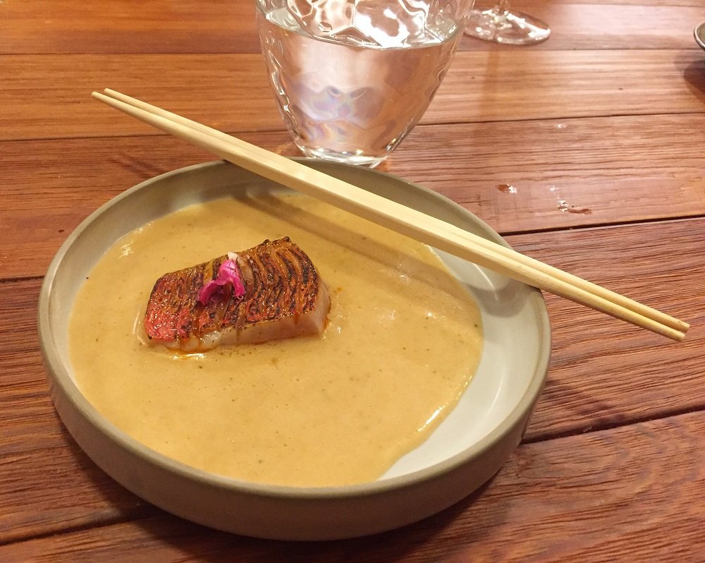 La cocina de Iván Abril puede sintetizarse en “productos de aquí con técnicas de allá”, cuando aquí significa Euskadi y su natal Galicia y allá se refiere a las técnicas asiáticas traídas de su tiempo en Hong Kong, y otras menos conocidas de Tailandia, Vietnam o India.