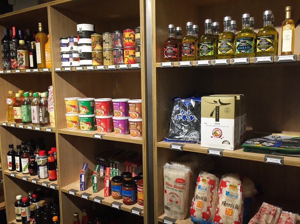 Entre sus funciones está la de ultramarinos con productos asiáticos seleccionados por su calidad: fideos, pastas de curry, salsa sriracha, vinagres de arroz y soja, hasta la famosa mayonesa japoKewpie. Quienes trabajen en la oficinas de la zona podrán comprar comida para llevar o incluso calentar su plato en un microondas y comerla allí mismo, en el propio local. El precio medio del plato ronda los 9 euros.