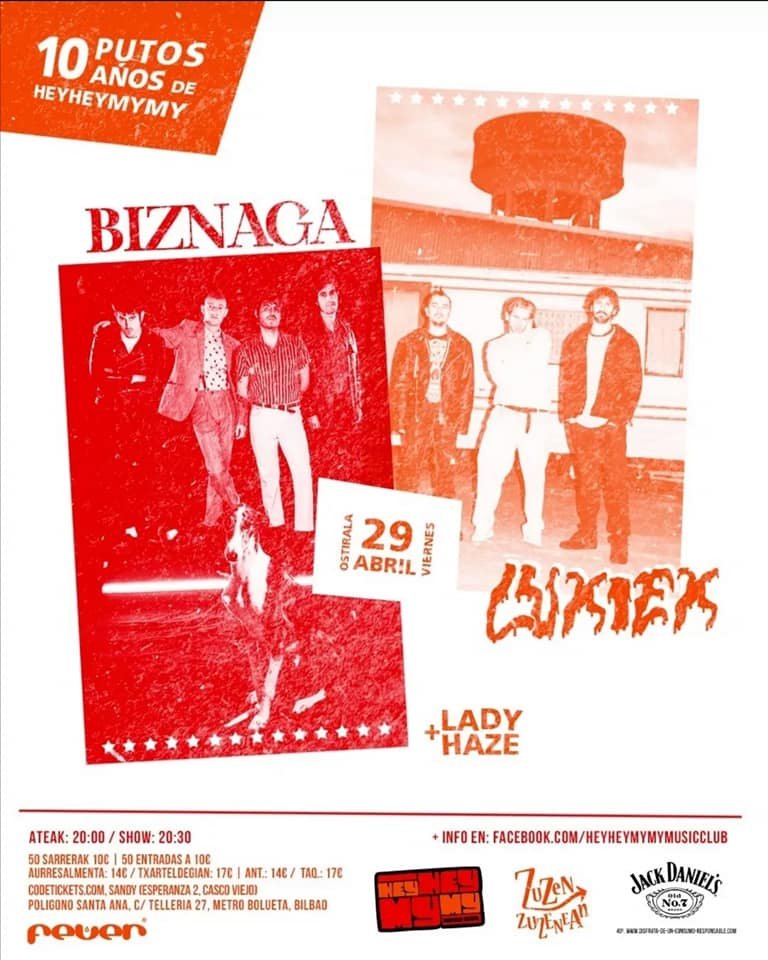 «Abrirán Lady Haze, una banda nueva de Bilbao que bebe de The Velvet Underground y el rock clásico», detalla el programador cuando le preguntamos por el contenido de la fiesta. «Estamos muy contentos, porque tienen bastante proyección», asegura. Después de ellos tocarán los madrileños Biznaga, «una de las bandas del panorama indie, punk, con más repercusión de los últimos años», asegura, «con cuatro discos de mucha carga lírica y social y un directo que siempre clavan», ahonda. El tercer concierto correrá a cargo de Lukiek, proyecto paralelo de Josu Ximun, guitarrista de Belako, «con la propuesta más rockera de la noche, con también incursiones en el pop y dos discazos alucinantes», asevera. Una tripleta que, a ojos de Medrano, «mantiene las esencias de la música más indie 90s, pero sin perderle el pulso a la actualidad, con bandas bastante nuevas que están haciendo sus mejores álbumes ahora».