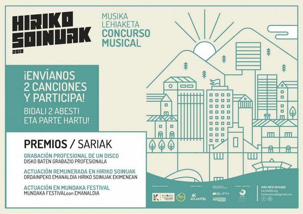 Si estás abriéndote camino en el mundo de la música, esto te interesa. Mucho. Nace un nuevo programa para apoyar el talento musical vasco gracias al Ayuntamiento de Barakaldo. Hiriko Soinuak es una iniciativa que consta de un concurso de bandas y solistas, una final en directo y un festival gratuito en la Herriko plaza de Barakaldo (en el que actuarán dos bandas estatales más que consolidas y conocidas, que se anunciarán más adelante). Hiriko Soinuak cuenta con BI FM como medio colaborador.