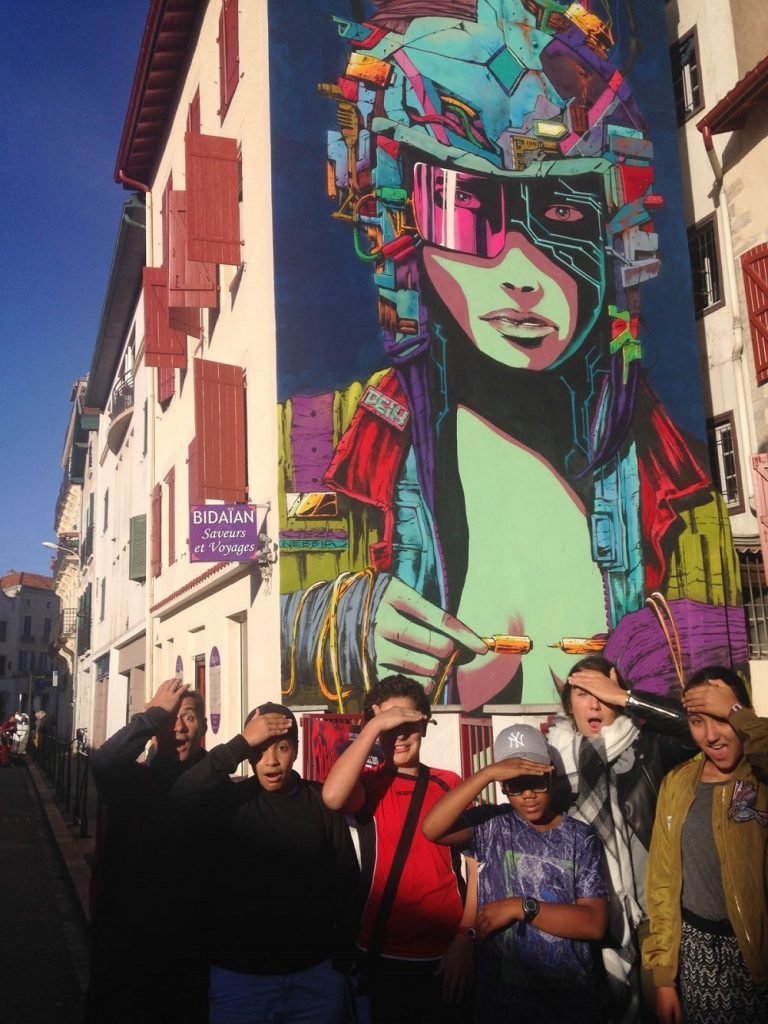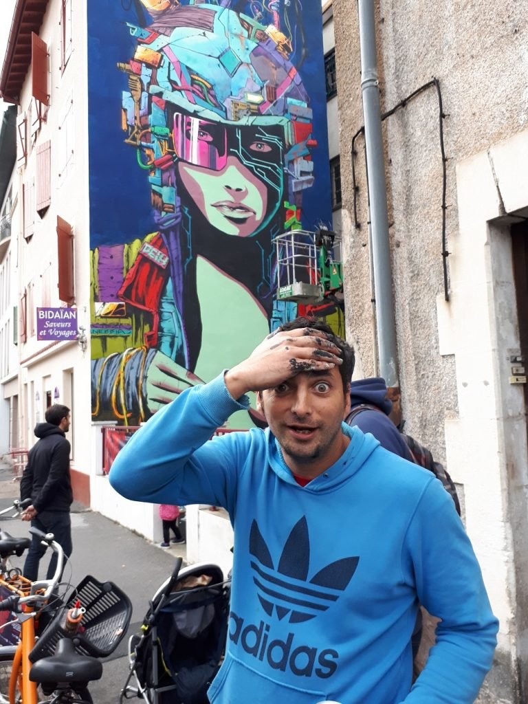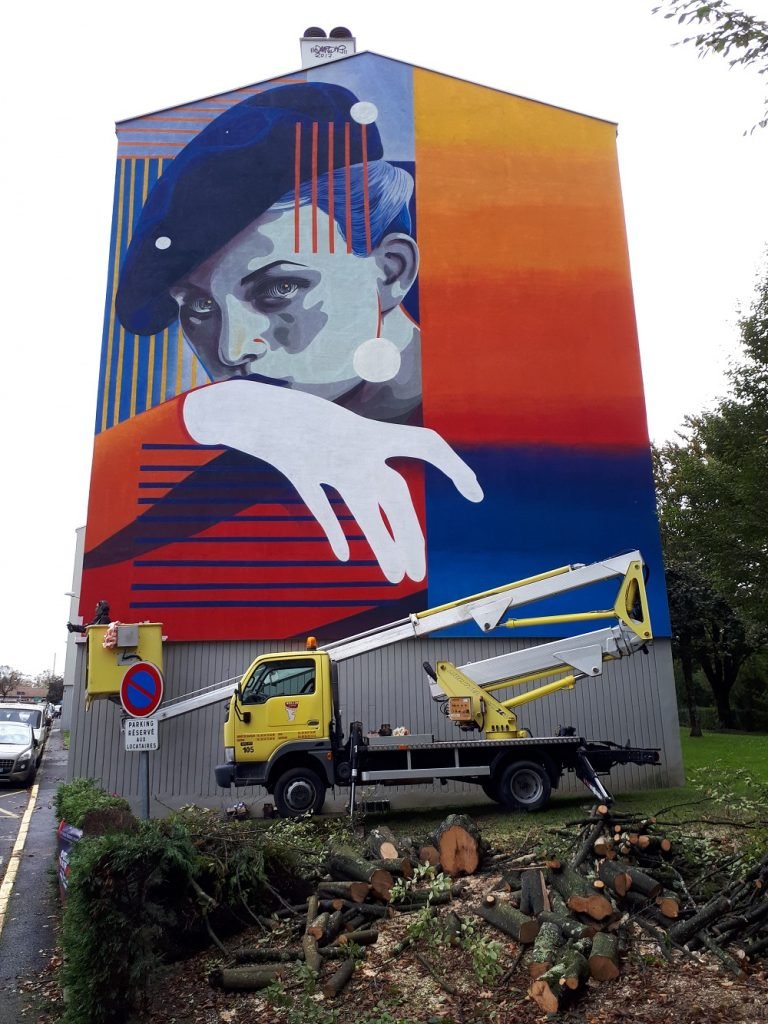 El pasado fin de semana cruzamos la muga para acercarnos a Baiona y poder así observar de primera mano el proceso de creación de las obras englobadas dentro de Points de Vue, programa de arte callejero que, tras cuatro días de trabajos (entre el 18 y el 22 de octubre), cambió la cara de muchos edificios, muros, calzadas y otros elementos urbanos de la localidad labortana.