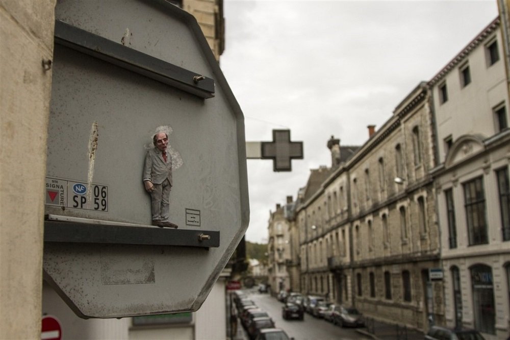 Mención especial para el gallego Isaac Cordal, quien no solo intervino con su ejército de pequeños humanoides en multitud de rincones baionarras, sino que también presentó allí (en el museo La Poudrière) su exposición itinerante «La Comédie Humaine», que recopila muchas de sus obras creadas entre 2013 y el presente año y que estará abierta hasta el 19 de noviembre.