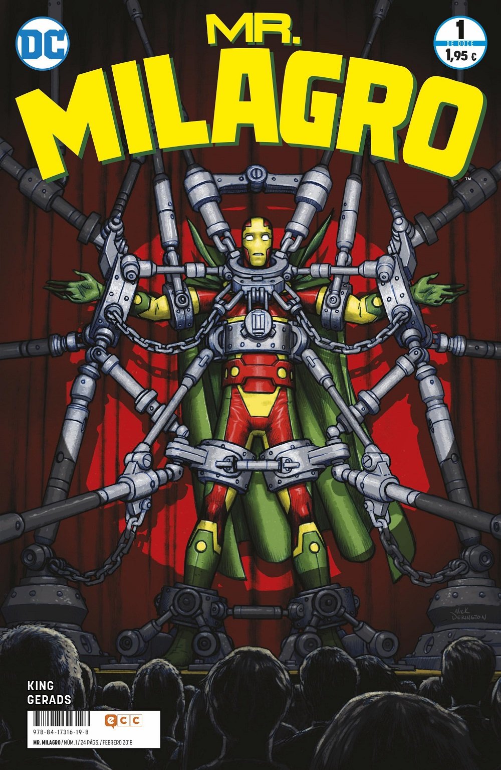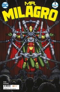 «Scott Free es el mejor escapista que jamás haya existido. Tan habilidoso, que escapó del espantoso orfanato de la Abuelita Bondad y de los peligros del planeta Apokolips para viajar a través del universo y establecerse en la Tierra, iniciando una nueva vida con su esposa, la mujer conocida como Big Barda. Empleando el nombre de Mister Milagro, Scott ha triunfado mostrando sus técnicas acrobáticas, ¡incluso forjó amistad con los componentes de la Liga de la Justicia! Se podría decir que Scott Free lo tiene todo… pero no es suficiente. Mister Milagro domina todos los trucos, excepto uno: evitar a la muerte. ¿Será capaz de lograrlo? Nuestro héroe tendrá que suicidarse si quiere descubrirlo…» Texto: ECC Cómics
