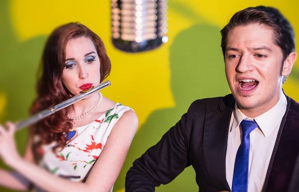 Enérgico dúo al estilo Bonnie & Clyde, con Abi F. en la voz y Mihailovic en saxo, electrónica y teclas, nos guían en un apasionante viaje a través de conocidas versiones de la locura explosiva de los años 20, del sonido de las big bands de los 40 y 50, y la elegante electrónica que te engancha a bailar y a cantar.