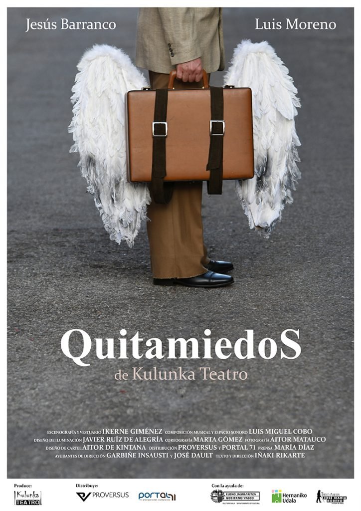 Por su parte, la otra recomendación del mes, “QuitamiedoS”, nos llega de la mano de la compañía guipuzcoana Kulunka Teatro. Fundada por Garbiñe Insausti y José Dault, no tiene aún una década de vida y, sin embargo, ya ha alcanzado el cielo a nivel estatal. El año pasado, con su obra “Solitudes” (que se coló en el Top 2 de “Lo mejor visto en teatro en 2018” para BI FM -en liza con un montaje del West End londinense-), se alzaron con el máximo galardón del teatro en España, el Premio MAX al Mejor Espectáculo Teatral. En este 2019, los Kulunka vuelven con nueva producción, escrita y dirigida por Iñaki Rikarte y recién estrenada en octubre inaugurando el Festival Internacional de Teatro de Vitoria-Gasteiz. “QuitamiedoS” nos presenta una peculiar visión de la vida y la muerte en la que, cada uno, tenemos un ángel de la guarda que sigue nuestros pasos hasta que morimos… y nos convertimos, nosotros mismos, en custodios de un recién llegado a este mundo.