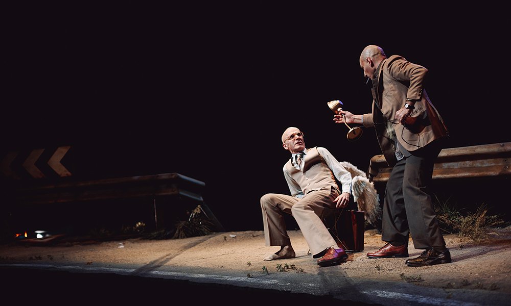 Una curva de una carretera comarcal con un gran quitamiedos destrozado tras un accidente en el que un coche se ha salido de la calzada, nos pone en situación. El actor Luis Moreno da vida (valga la contradicción) al recién fallecido, que se encuentra allí mismo con su ángel de la guarda (Jesús Barranco). Este último viene a finiquitar su labor de cuatro décadas como su fiel escudero en la sombra, pero su presencia desencadenará una serie de conversaciones, reflexiones y, a la postre, descubrimientos, que pondrán patas arriba lo que el recién finado creía que había sido su vida hasta entonces. La muerte, el amor, la memoria, la paternidad… son conceptos que saltan a escena junto a ese quitamiedos a lo largo de los escasos 90 minutos de función, que es también el tiempo que tienen los dos personajes para encontrarse, conocerse y despedirse (exactamente lo que tarde el cuerpo del muerto en enfriarse hasta fundirse con la temperatura ambiente). Una originalísima (y muy bien planteada y desarrollada) premisa con la que Kulunka vuelve a hablarnos de los grandes temas de la humanidad, pero con un acercamiento altamente poético, con un sorprendente barniz de magia y ternura, y, sobre todo, alejándose de solemnidades y sin perder nunca el sentido del humor (exactamente de la misma forma que ya hicieron -con un planteamiento totalmente diferente, claro- en la mencionada “Solitudes”).