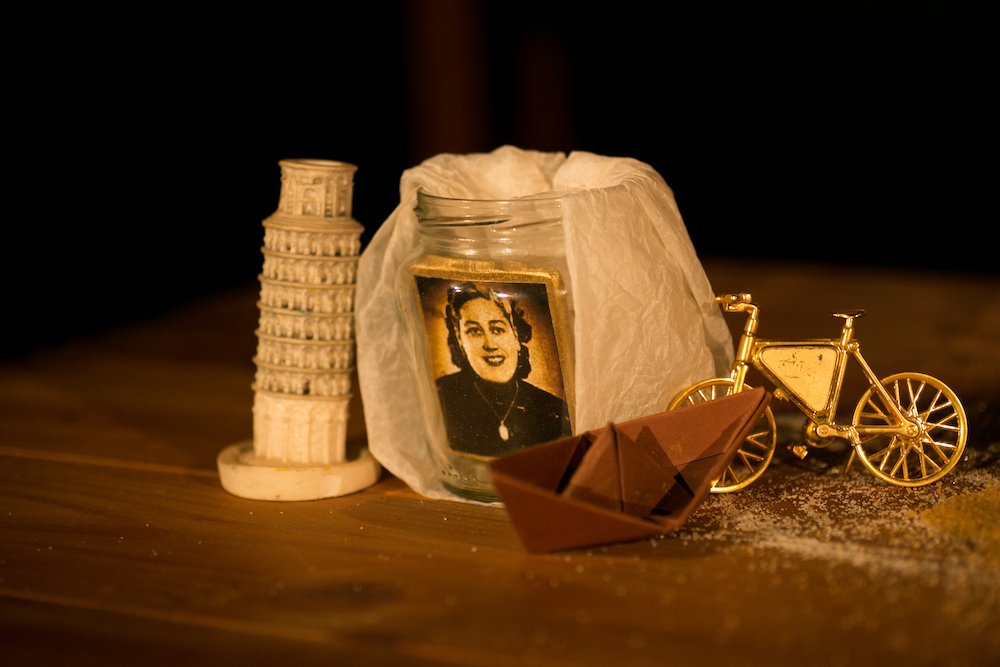 Porque «Conservando memoria» es, en realidad, teatro de objetos, y en escena tenemos sólo a Izaskun contándonos esas cuatro vidas ayudándose de fotos, recuerdos, juguetes, arena, luz, fuego… Por eso decíamos antes lo de «joyita»; es una JOYA teatral (en mayúsculas, además), pero usamos el diminutivo porque se trata de una propuesta que hay que disfrutar de cerca, en una sala pequeña y con una buena visión del pequeño y mágico guiñol que hace de escenografía y que está plagado de elementos a los que Izaskun sabe sacar más partido del que puedas imaginar (¡¡qué delicia esa escena del baile en la plaza del pueblo!!). De hecho, la cita de Bilbao en La Fundición se enmarca dentro del 39º Festival Internacional de Títeres de la ciudad. Pero, ojo, que esa etiqueta no te asuste; estamos aquí ante una propuesta teatral de primer nivel, tanto dramatúrgicamente como en la puesta en escena y la interpretación. Y que, además, la organización del certamen recomienda para mayores de 16 años.