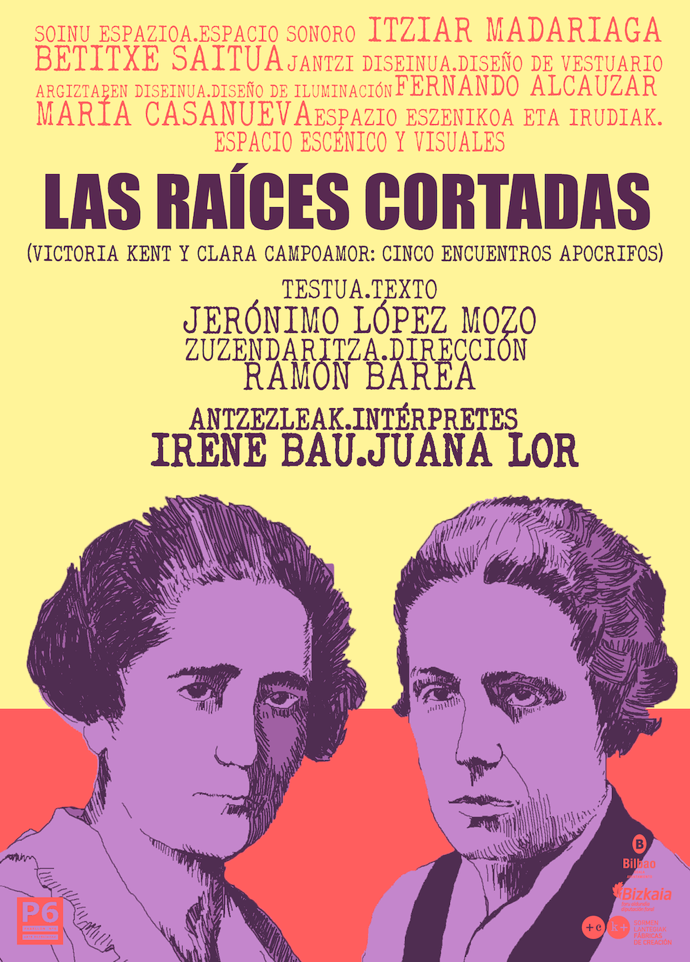 Desde el 22 de octubre, la sala Pabellón 6 de Bilbao acoge el montaje propio «Las raíces cortadas», que se podrá ver (Urkullu, Sánchez y Covid-19 mediante) hasta el 15 de noviembre. ¿Quiénes son Clara Campoamor y Victoria Kent? Desgraciadamente, a la mayoría sólo nos suenan: de alguna calle que lleva su nombre, de algún lejano recuerdo de las clases de historia en nuestros tiempos de estudiantes… Campoamor y Kent fueron las dos única parlamentarias españolas en las Cortes Constituyentes de 1931, recién proclamada la Segunda República, una época en la que ellas sí podían ser elegidas pero no podían votar. Pioneras, inteligentes, audaces, formadas, valientes. Así fueron dos mujeres que, como tantas otras, han sido maltratadas por la historia. Sí, querido/a lector/a, probablemente si no hubiera sido por ellas, tú, tu hija, tu madre… no hubieran tenido derecho a voto o lo hubieran tenido aún más tarde. Pero lo realmente apasionante de estas dos mujeres es que, además de coincidir, se enfrentaron. Mientras una apostaba por el voto femenino inmediato y sin ambages, la otra temía que a la mujer (tradicionalmente poco formada por su reclusión domiciliaria y sometida al poder del cura o confesor de turno) le faltara criterio para poder votar en verdadera libertad a corto plazo.
