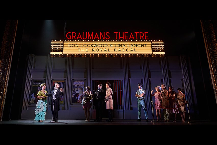 Aquí, las coreografías grupales no terminan de brillar (mucho mejor planteados los dúos y tríos); la pareja protagonista es tan, tan melosa que carga (era imposible alcanzar la química y el equilibrio entre romanticismo y merengue de Kelly y Reynolds en la película); por momentos hay cierto caos en escena (todas las partes del rodaje -no hacían falta hasta 6 secundarios pretendidamente graciosos en escena-); el supuesto ‘gran número’ del ‘filme dentro del filme’ («Broadway Melody») no aporta lo que semejante clímax demanda; las proyecciones escenográficas de fondo que deberían complementar los muy trabajados decorados son pobres (las farolas más lejanas, el símbolo de ‘Hollywoodland’, los letreros de relleno traseros de Broadway…). Y no se saca partido a los anunciados «mil litros de agua» del número que da título al show (lejos de la prometida «lluvia en escena»).