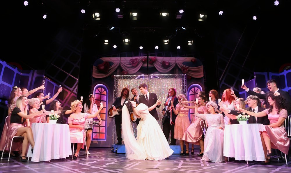 En este «The Wedding Singer» (show de Broadway de 2006 basado en la comedia romántica que, en 1998, protagonizaron Adam Sandler y Drew Barrymore), la inversión en producción es mastodóntica (derechos del musical original, escenografías, vestuarios…); el trabajo es arduo (en adaptación al castellano del libreto y las canciones, en regrabar la banda sonora, en ensayar durante meses cada viernes de 7 de la tarde hasta la medianoche…); y la profesionalidad alcanza cotas inconcebibles para un equipo amateur (interpretación, canto -la mayoría de las canciones son en vivo; aunque la música sí es pregrabada-, coreografías…). Y, sobre todo, el resultado es más que sorprendente y más que loable, no ya para las expectativas que el público puede llevar, sino incluso para el mercado profesional y comercial actual.
