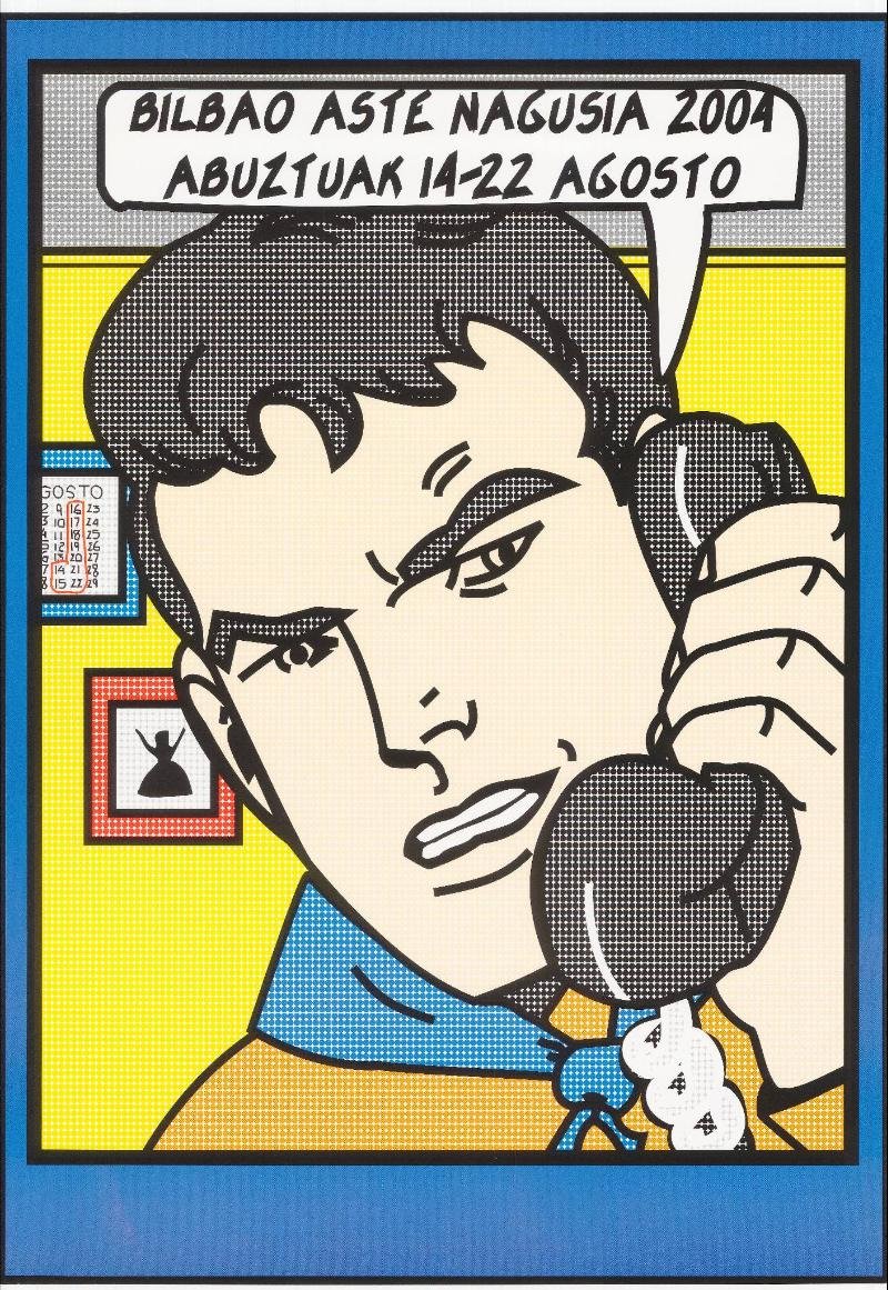No hay nada más alucinante que levantarte un día y ver la ciudad forrada con un trabajo tuyo. Pero igualmente alucinante es que te pongan a parir cada día de fiestas por un trabajo que han elegido otros, con argumentos como «¡y encima es mexicana!». Supongo que Joseba Solozabal y su equipo, que tanto me criticaron en su programa de Telebilbao, desconocían lo que era el Pop Art (que, por cierto, se exponía en ese mismo momento en el Guggenheim). Se habló de plagio, como siempre, cuando desde un principio comuniqué al Ayuntamiento que estaba tomado de una viñeta de Spiderman y no le vieron mayor problema. El año siguiente ganó un click de Playmobil y nadie se quejó porque el autor no hubiera diseñado el muñequito… Que mi cartel no le gustara a Solozabal habla bien de mi trabajo.