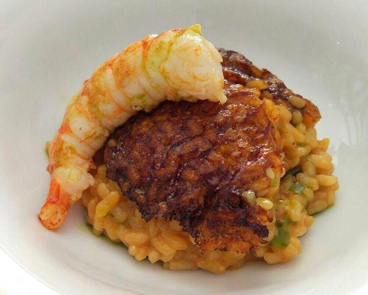 Arroz cremoso de café, setas y gambón, en Al Margen