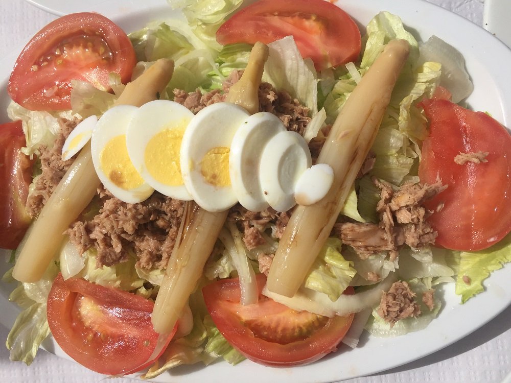Pollo asado, patatas y ensalada // Igor Cubillo