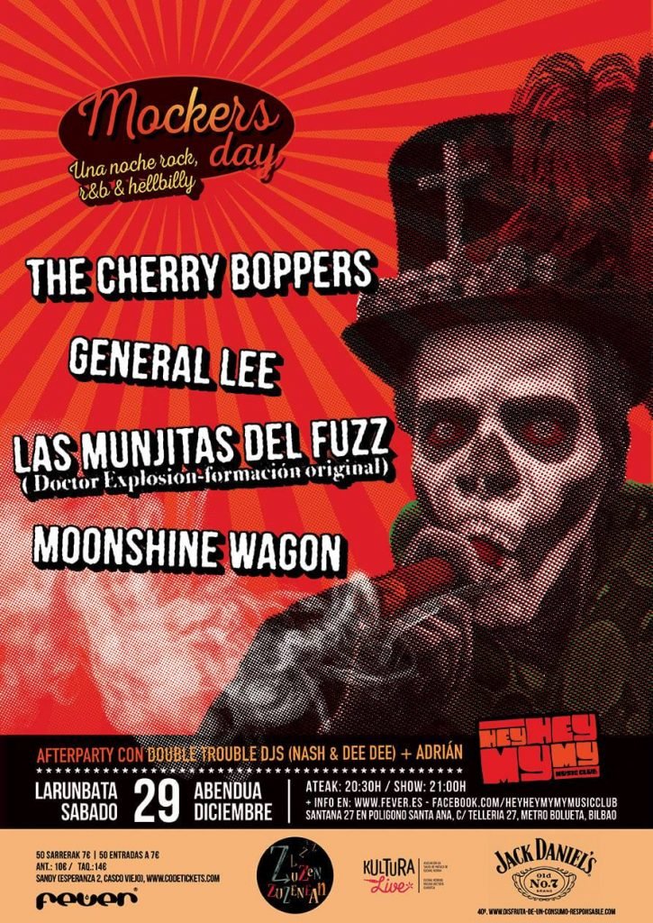 The Cherry Boppers, General Lee, Las Munjitas del Fuzz y Moonshine Wagon actuarán en la sala Fever de Bilbao el sábado 29 de diciembre. Sorteamos tres entradas dobles